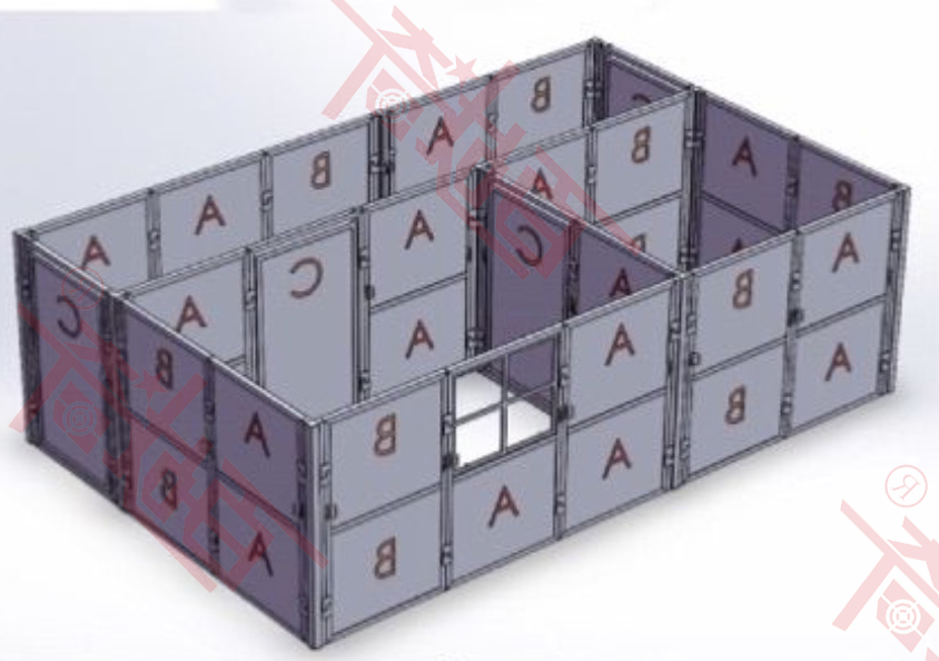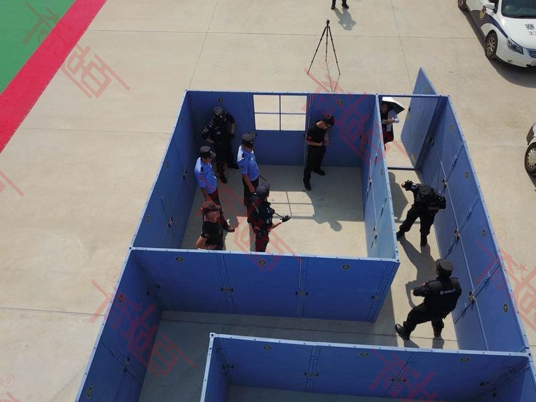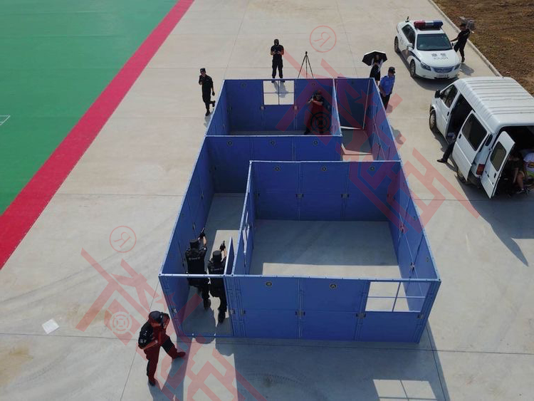 CQB即室内近距离战斗,是当前各国军警单位为适应城市中不断蔓延的恐怖活动、犯罪、特种作战需要而发展的一种战斗技巧及战术模式。 CQB快速拼接战术训练冲房可实现房间墙体快速安装拆解,随意构建布局的功能,该CQB战术训练房屋设计了可快速组合拆解活动关节和小块拼装的活动板墙,在材料的选择上我公司研发生产部门采用了具有高强度、质量轻的合金材料作为结构主体,辅助材料采用新型纤维板作为填充材料,结构整体坚实,质量轻便,拆卸组装十分便捷。