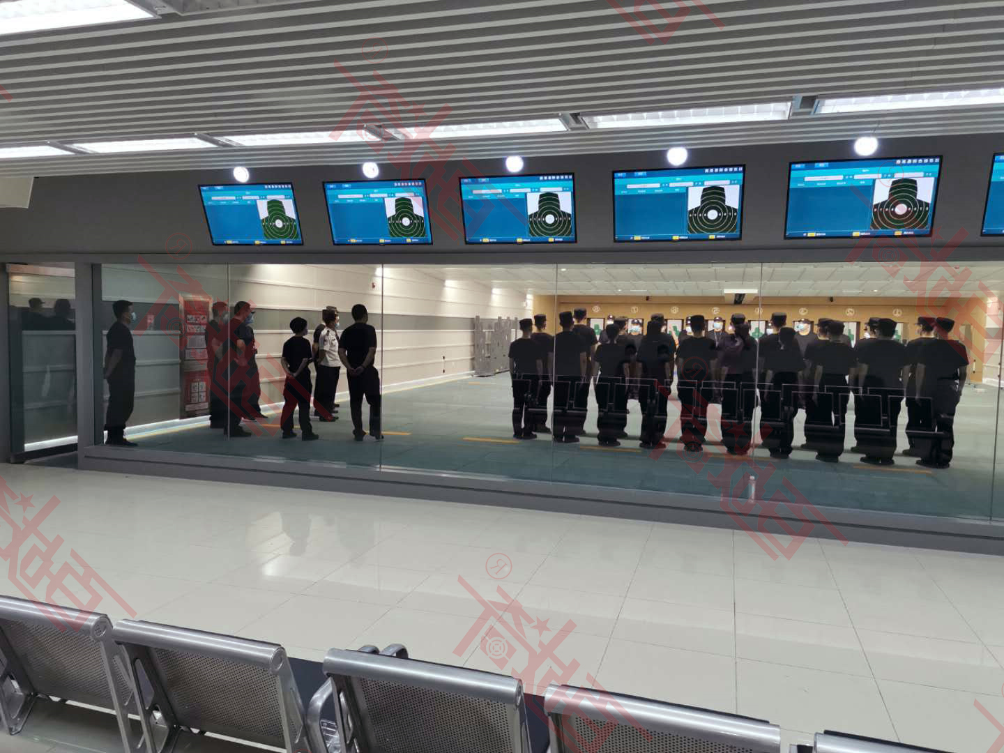近日某机场公安分局室内实弹射击靶场完成交付使用,公安局组织警员实弹射击考核,公安局领导莅临现场指挥实弹射击考核工作。